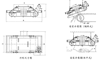 总体尺寸小,可称为轻型永磁带式除铁器,长度、高度分别是C型的:70%、86%。